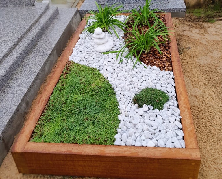 Nos solutions sont pensées pour être autonomes. Les matériaux choisis (Corten, bois) ne nécessitent aucun nettoyage chimique, et la sélection végétale est adaptée au climat spécifique du bassin rennais, garantissant une dignité constante à la sépulture.