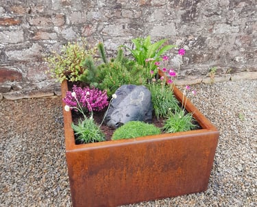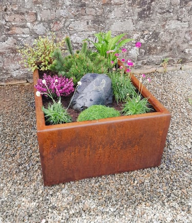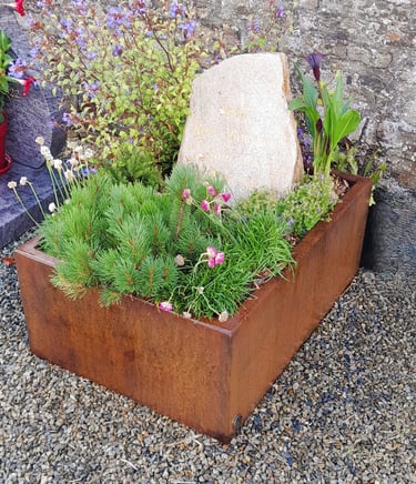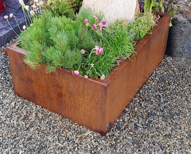 Cet encadrement est conçu pour transformer une concession cinéraire en un petit jardin de mémoire, sobre et apaisant. Très apprécié pour son aspect "industriel-naturel", le corten offre un contraste saisissant avec le vert des feuillages. C'est une solution indestructible, qui symbolise la force du souvenir à travers une matière qui s'embellit en vieillissant.