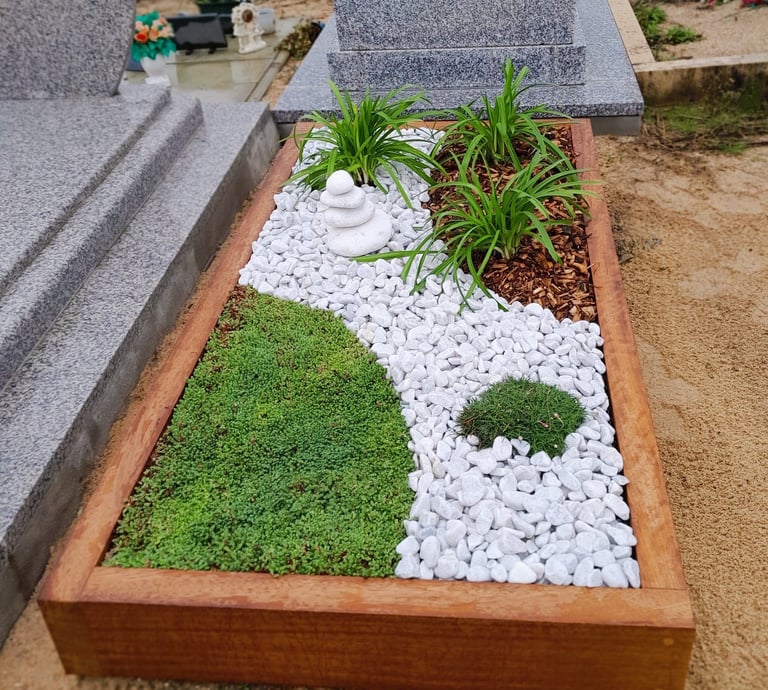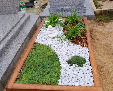 Nos solutions sont pensées pour être autonomes. Les matériaux choisis (Corten, bois) ne nécessitent aucun nettoyage chimique, et la sélection végétale est adaptée au climat spécifique du bassin rennais, garantissant une dignité constante à la sépulture.